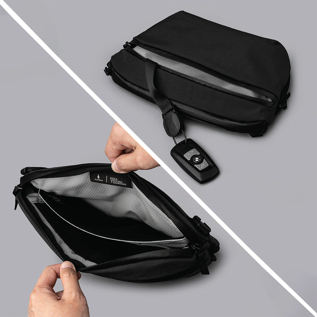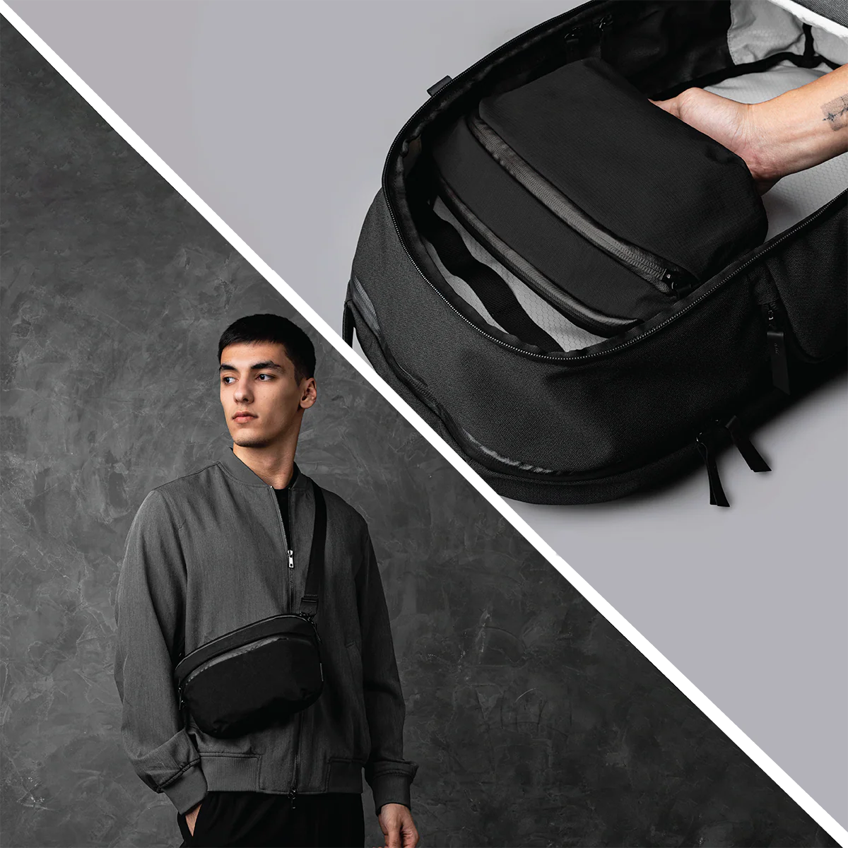 Ця легка сумка-слінг вирішує щоденні завдання, про які інші навіть не думають. Прихована кишеня для пляшки води з'являється тільки тоді, коли вона вам потрібна, — в інший час її просто немає. Усередині — продумана організація, яка тримає ваш телефон, планшет і повсякденні речі захищеними та легкодоступними. Без громіздкості, без зайвих деталей.